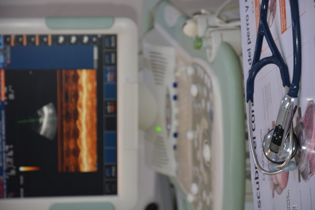 • Ultrasonografický přístroj s barevným Dopplerem (sondy mikrokonvexní, lineární, kardiologické ve dvou velikostech)
